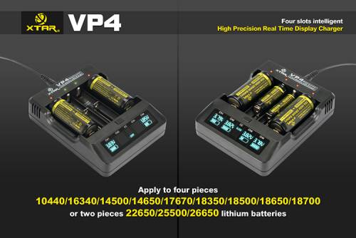 Типоразмер заряжаемых аккумуляторов: Li-ion - 10440, 14500, 16340, 17335, 17500, 17670, 18650, 18700, 26650